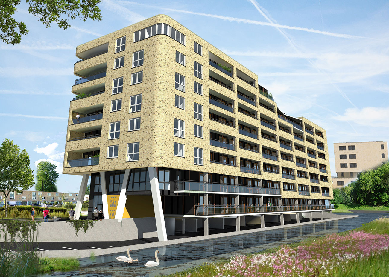 Aan de rand van het centrum van Alphen aan den Rijn, in de woonwijk Kerk en Zanen en nabij het station, wordt door KingField Development samen met Tetteroo een prachtig nieuw project gerealiseerd, project L’ Arrivée. Twee schitterend vormgegeven, duurzame en moderne gebouwen van zeven woonlagen met in ieder gebouw 49 drie- en vierkamerappartementen. De appartementen zijn gelegen boven de halfverdiepte stallingsgarage waar de privé-parkeerplaatsen en de bergingen zich bevinden. De appartementen beschikken over al het comfort dat u van een nieuwbouwappartement mag verwachten. Het complex voldoet aan de hoogste duurzaamheidseisen en is gasloos. Elk appartement wordt standaard voorzien van keuken, sanitair en tegelwerk. De blikvanger van ieder appartement is het heerlijk zonnige, woningbrede balkon, welke door de grote raampartij aan de ruime woonkamer wordt verbonden.
